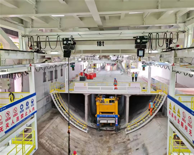 此次始发点位于长江北岸,最小埋深仅11.2米。现场工程技术人员严密监控着各项参数。海太长江隧道A4标项目机电副总工程师左世荣介绍,盾构机始发即面临严峻挑战:覆土层浅、始发姿态为斜线、泥水仓压力平衡控制要求高,且需近距离下穿重要管线。项目团队通过严格施作端头加固,采用“同步注浆控制+自动化监测”技术,确保浅覆土段地层固若金汤;针对斜线始发难题,创新应用反力架专项设计,在有限空间内动态拟合始发轴线,实现毫米级姿态调整;通过建立泥水配比-压力-流量联动控制体系,为盾构机打造稳定“呼吸系统”;在下穿管线施工中采取“参数控制+地面巡视”双保险措施,为地下管线撑起无形保护伞。这一系列精细化管控措施为“沧渊号”盾构机安全掘进提供了坚实保障。