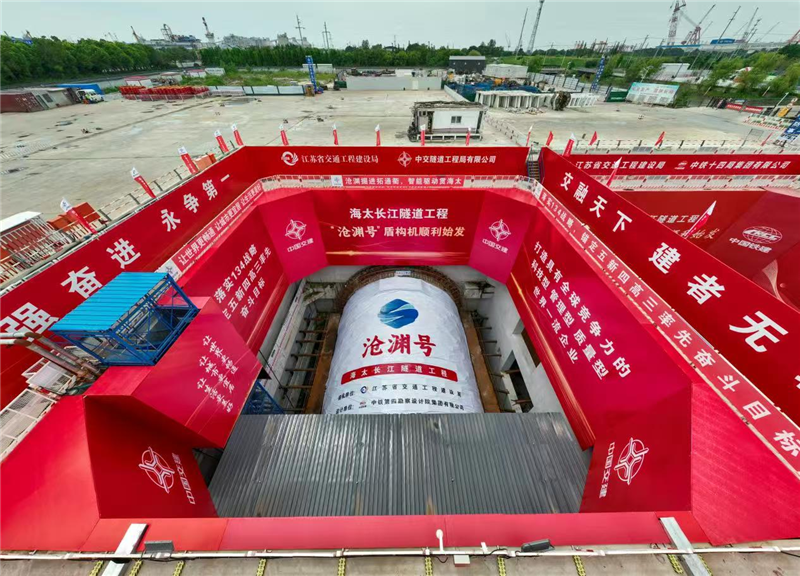 8月11日,长江北岸(江苏南通海门),地下深处传来低沉的轰鸣。伴随着工程总指挥一声清晰的“始发”指令,直径达16.66米的“沧渊号”盾构机巨大刀盘缓缓启动,破岩入江。这标志着由中交隧道局承建的海太长江隧道A4标左线工程正式启动掘进。