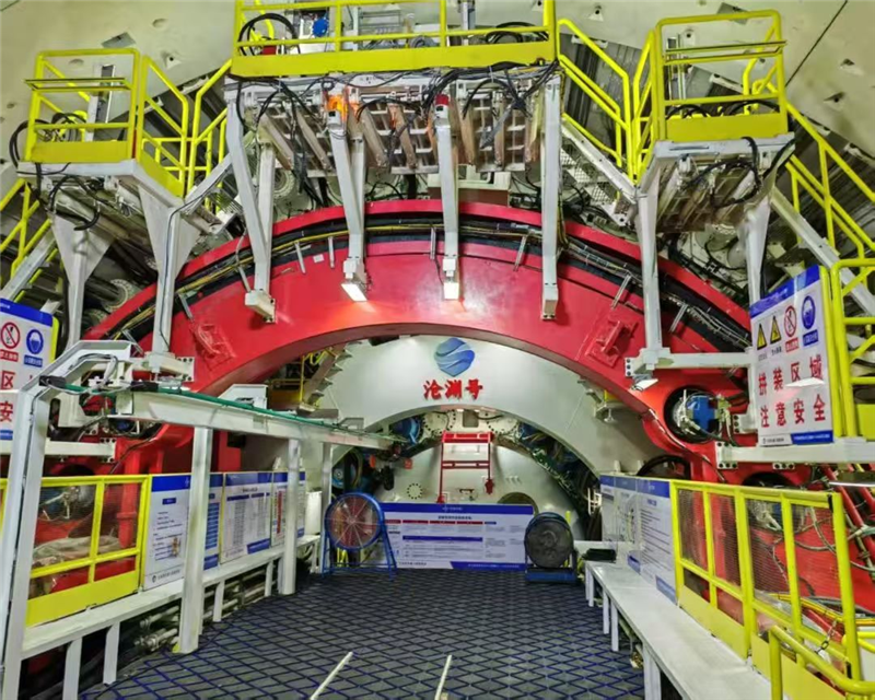 海太长江隧道地质条件极为复杂,堪称“水下地质博物馆”。盾构机将独头掘进长达9327米,穿越由黏性土及砂性土构成的复杂地层(黏土地层约3.8千米、粉砂层约4.2千米、中粗砂层约1.3千米),这些地层具有高含水量、大孔隙比、低强度、自稳性差等不良特性。盾构掘进需克服隧道最大覆土深度约41米、穿越江底时最大埋深处达75米的挑战,并承受最大水压达0.75兆帕——相当于指甲盖大小面积要顶住7.5公斤重物的考验。面对超长距离、超大直径、超高水压、超大埋深等世界级难题,“沧渊号”集成了三大核心技术:“数字大脑”(智能诊断与维护系统,实现全生命周期护理);“智刃铁齿”(配置常压换刀功能的软土刀盘,搭配梯度分布的合金刀具构成“超硬龙齿矩阵”,43%超高开口率,配备中心冲刷及结泥饼预警系统,可伸缩摄像实时观察);“智慧心脏”(全球首套具备主动防护功能,实现掘进可视、可达、可控,连续监控主驱动运行,感知刀盘受力,端面密封可更换和主动伸缩)。同时,双液同步注浆、DDCI管片成型技术(双燕尾榫+卡扣设计)、全预制拼装结构(工厂预制、现场拼装,误差≤3毫米)等创新工艺,将有效应对掘进风险,提升施工效率和质量,为这条“地下蛟龙”穿江之旅保驾护航。